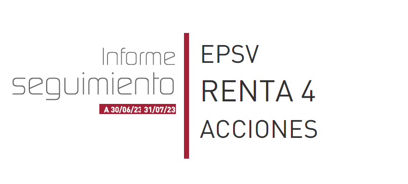 EPSV Renta 4 Acciones se revaloriza un +2,3% en el mes de julio, alcanzando una rentabilidad en lo que llevamos de 2023 del 16,7%. La exposición a bolsa con la que cerramos el mes es del 93,5%, algo superior al cierre del mes anterior.