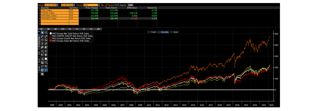 La filosofía de renta 4 gestora sostiene que la mejor inversión históricamente ha demostrado ser la inversión en compañías de calidad, como así lo demuestra el siguiente gráfico: