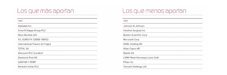 Los activos que más y menos han aportado en el mes fueron: