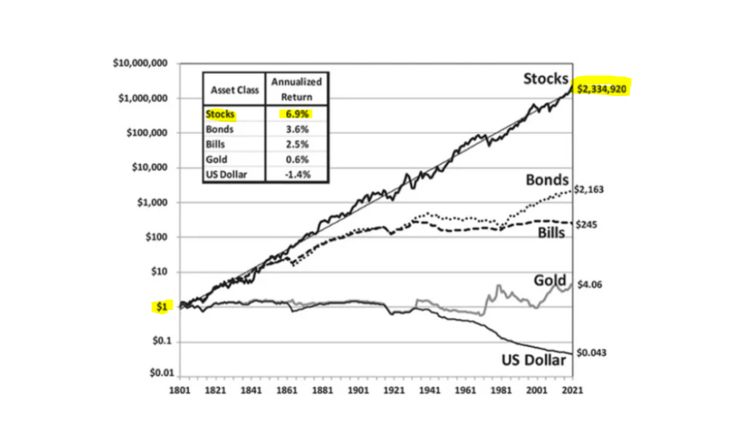 En mi opinión mantener exposición a renta variable sigue teniendo sentido ya que, como se observa en el gráfico superior, la inversión diversificada en acciones seguirá siendo en el largo plazo, de las pocas formas que existen de generar un nivel de riqueza que, con el paso del tiempo, forme un cambio de situación patrimonial real del ahorrador (enriquecimiento).