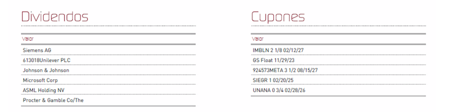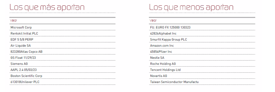 Los activos que más y menos han aportado junto con los dividendos y cupones cobrados en febrero fueron: