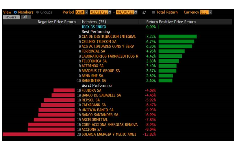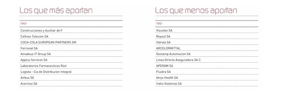 Las empresas que más y menos han aportado en el mes de abril fueron: