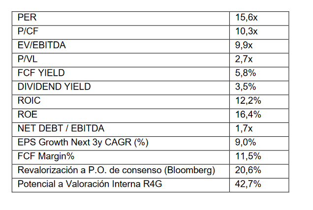 De la cartera con la que encaramos el comienzo de año, destacaría que es una cartera con unos ratios de valoración atractivos, con elevados retornos tanto sobre los recursos propios como sobre el capital invertido, bajos niveles de endeudamiento y con un crecimiento esperado de los beneficios muy potente y predecible para los próximos años.