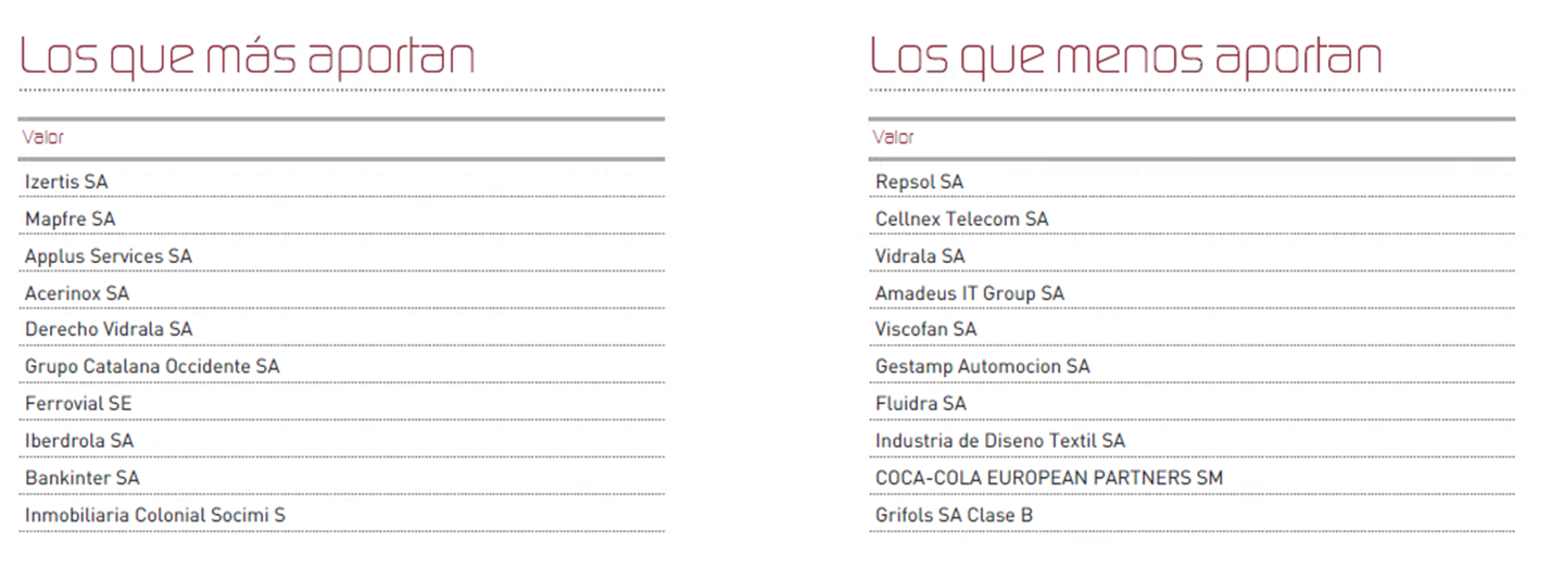 Las empresas que más y menos han aportado a la rentabilidad de Renta 4 Bolsa España FI en el mes fueron: