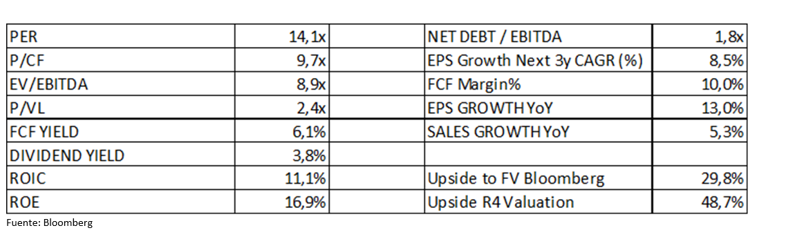 Y así podríamos seguir con muchas de las compañías que componen la cartera de Renta 4 Bolsa España FI, pero en definitiva, si analizamos los ratios de valoración de toda la cartera del fondo tendríamos unos ratios como los que se reflejan en la siguiente tabla: