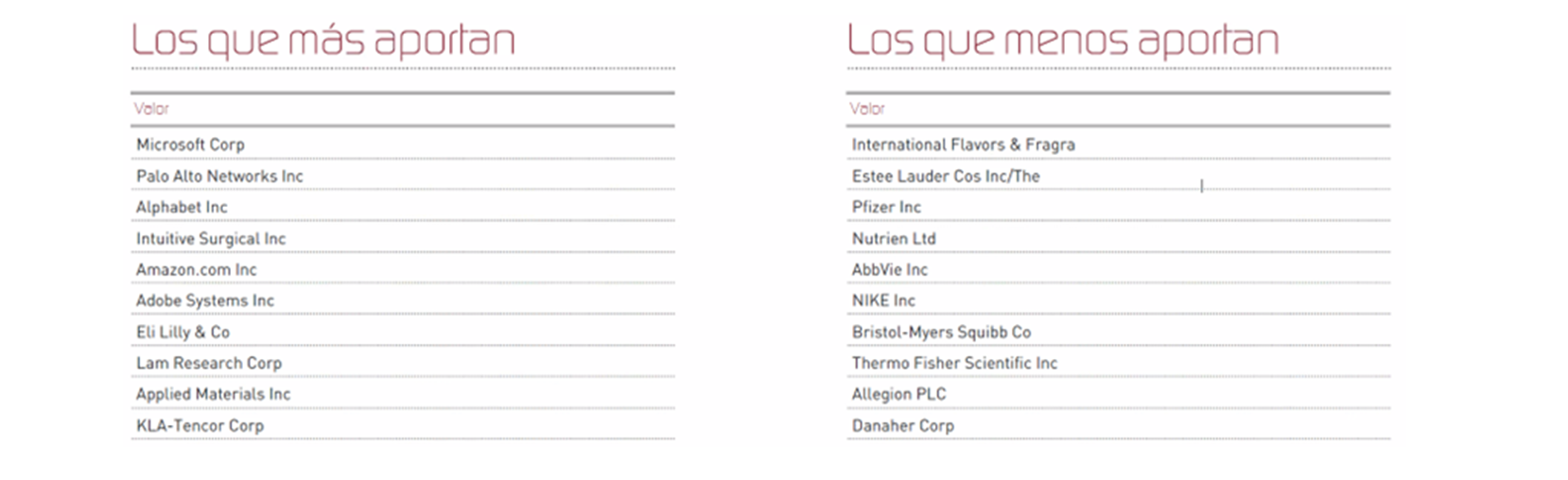 Durante el semestre hemos ido componiendo la cartera de Renta 4 EEUU Acciones FI basándonos en nuestra filosofía de inversión: Quality Investing, comprando aquellas compañías que cumplen nuestros criterios de calidad y que conocemos bien gracias al trabajo de nuestros analistas globales sectoriales y co-gestores de los fondos de Megatendencias gestionados en Renta 4 Gestora.