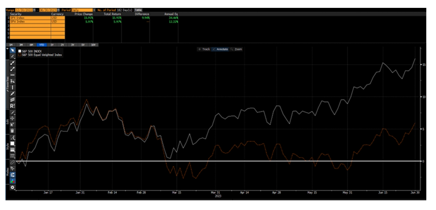 En 2023, siete acciones representan todas las ganancias del S&P 500 en lo que llevamos de año, y nueve empresas comprenden el 30% de todo el índice, la mayoría de ellas en sectores tecnológicos y de crecimiento. A partir de aquí, es sensato que los inversores consideren añadir a sus carteras más diversificación y por tanto menos concentración y mejor gestión de los riesgos.