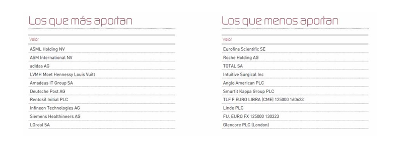 Entre las acciones que más han aportado a la rentabilidad de Renta 4 Europa Acciones FI destacan compañías de tecnología y compañías del sector de consumo discrecional. Por el lado de las compañías que peor comportamiento tuvieron, resaltan las relacionadas con el sector farmacéutico y materias primas: