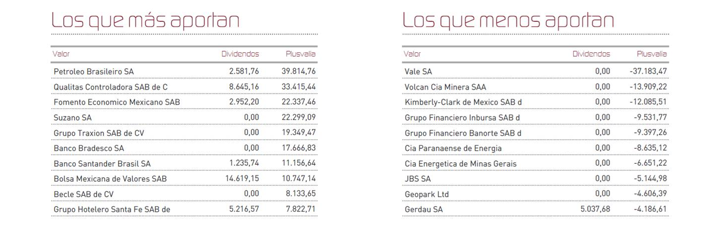 Nuestra estrategia se centra ahora mismo en la búsqueda de nuevas oportunidades en los mercados y sectores menos favorecidos hasta el momento. Colombia, Chile y Perú, están comenzando de dejar buenas oportunidades a la vista, así como los títulos de los sectores relacionados con los materiales básicos, que están buscando niveles de “suelo”, tras las fuertes pérdidas acumuladas en lo que llevamos de año.
