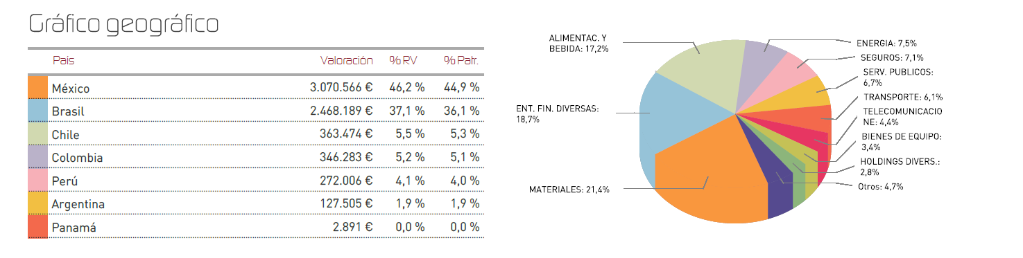 Las divisas latinoamericanas, mantienen cierta estabilidad, lo que está favoreciendo el comportamiento del fondo. En especial, el peso mexicano, que ha tomado el relevo del real brasileño del pasado año, está permitiendo un comportamiento brillante de nuestro fondo. Esta es la razón por la que en el análisis por mercados, México y Chile están apoyando el buen comportamiento del fondo.