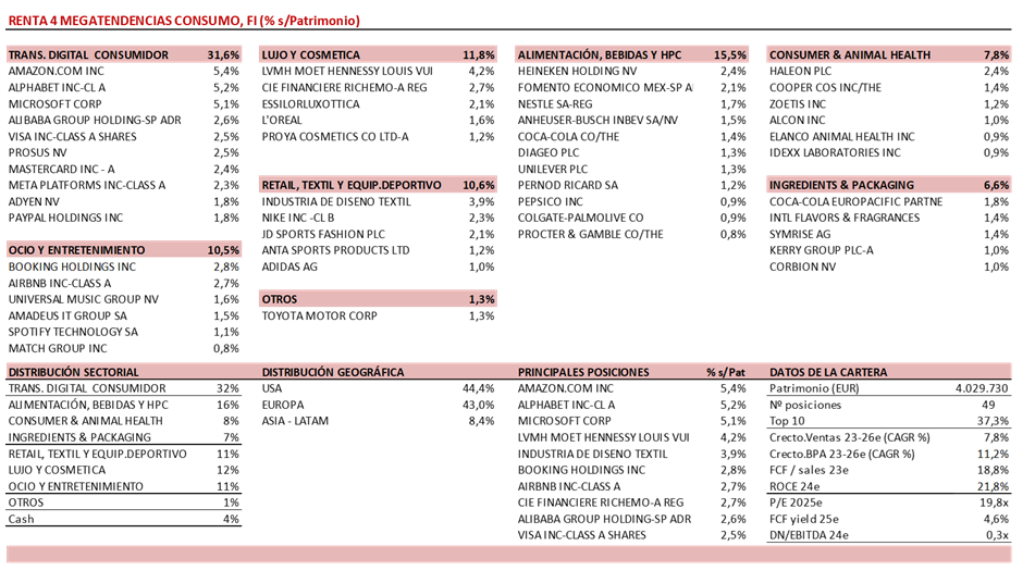 Informe elaborado por David Cabeza y Francisco Ramos, cogestores del fondo Renta 4 Megatendencias Consumo.