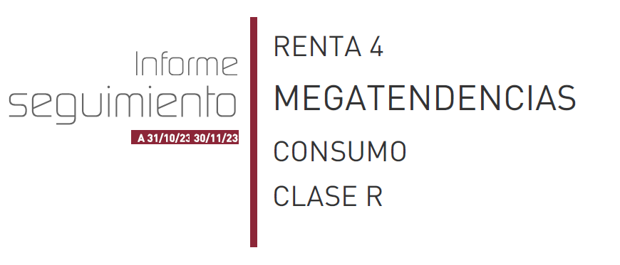 Renta 4 Megatendencias Consumo FI cierra noviembre con una rentabilidad anual de +13,1% después de subir un +7,0% en el último mes, frente al +6,4% del Stoxx 600 y el +5,8% del S&P (en euros). Noviembre ha sido muy positivo en los mercados de renta variable, en lo que parece una versión adelantada del rally de final de año. La caída de los tipos de interés, tanto de largo plazo como de corto plazo, moderación de la inflación, datos macro y resultados empresariales relativamente sólidos, explican el buen comportamiento y "risk on".