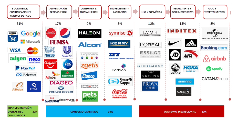 Creemos que, en este contexto, habrá un foco creciente en la calidad de las compañías. Seguimos favoreciendo compañías inmersas en megatendencias, ganadoras en sus sectores, con visibilidad, crecimiento rentable, generadoras de caja, saneadas financieramente, buenos equipos gestores, y buena gestión del capital.