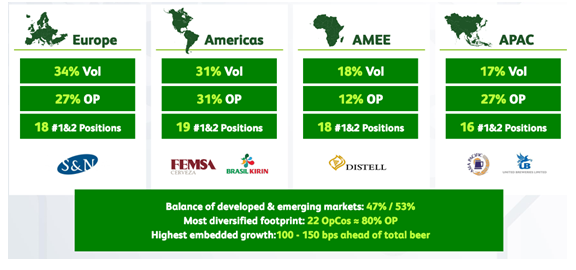 Hemos incluido a Heineken, la segunda mayor cervecera del mundo, con un interesante perfil de crecimiento orgánico (gracias a su peso en emergentes y premium), potencial de mejora de márgenes operativos (reducción de coste de materias primas, energéticos, transporte, “self-help” con cierre de fábricas), y valoración atractiva. Es la compañía con múltiplos más bajos en el sector cervecero, cotiza a 14x PER 24e, mínimos históricos vs. MSCI Europe, para un negocio que creemos está en un punto de inflexión en beneficios. Incorporamos la historia de crecimiento a través de Heineken Holding, matriz cotizada de Heineken NV (posee el 50,5%). Aunque siempre ha cotizado con algo de descuento (por menor liquidez), el descuento actual (15-20%) está por encima de la media de 10 años.