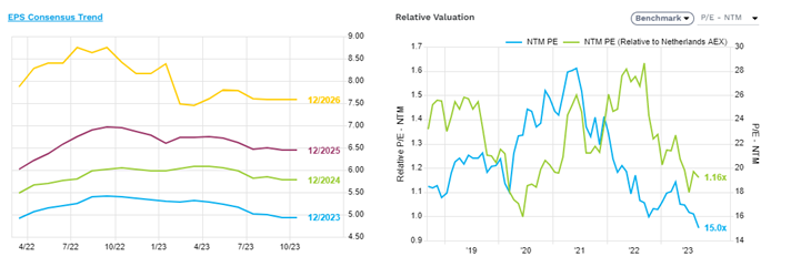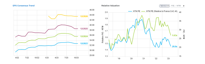 La publicación de resultados del 3T23, ajuste de guías 2023, y previsiones 2024 que comenzará en 2 semanas, serán importantes para evaluar tanto el escenario económico como la calidad de las compañías. En los últimos 3 meses las estimaciones de beneficios 2023 se han revisado ligeramente al alza (+0,7% en el S&P y +1,2% en Stoxx 600), que junto al recorte en las bolsas nos ha llevado a un ajuste a la baja en los múltiplos (PER 23e de 19,5x en S&P y 12,8x en Stoxx 600). De cara a 2024, el consenso apunta a crecimiento en los beneficios del 12,1% en el S&P y del 6,5% en el Stoxx 600, que llevan a múltiplo de 17,4x beneficios 2024 en el S&P (en línea con la media del periodo 2000-hoy), y de 12,0x en el Stoxx 600, que supone un descuento del 12% vs. la media de 2000-hoy (13,5x).
