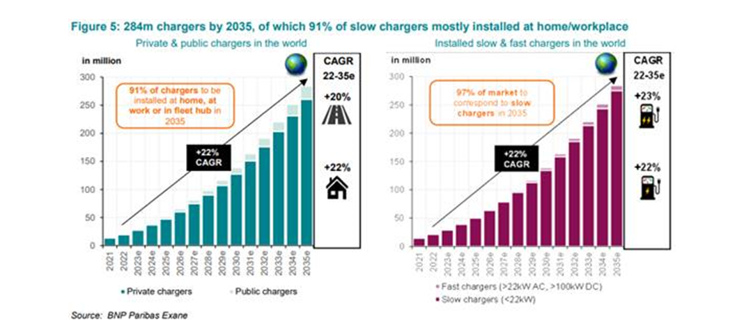 Dentro del sector, preferimos posicionarnos en compañías con mayor visibilidad en resultados y mayores márgenes/generación de caja. Por ello, tenemos en cartera Zaptec (márgenes EBITDA positivos) y Wallbox (alcanzará margen EBITDA positivo a partir de 2024), mientras otras compañías como Chargepoint y Blink Charging no se espera que alcancen márgenes positivos hasta 2026.