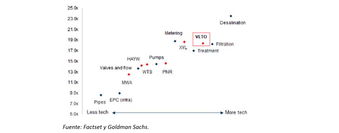 Este mes, hemos incluido en cartera Veralto (Capitalización: 24.500Mn€), spin-off de Danaher y líder dentro del sector tratamiento de agua. La compañía presenta claros catalizadores como el estrés hídrico mundial y la fuerte regulación en tratamiento de agua para mejorar la calidad del agua que consumimos.