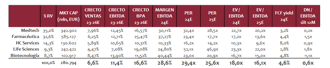 De cara a este ejercicio sobre la mesa se mantienen una serie de catalizadores que dotan al sector de un mayor atractivo. Una vez el contexto de mercado se normaliza y se han ajustado las estimaciones tanto de ventas como de beneficios para el año (+7% de crecimiento en ventas y doble dígito para el BPA), los nuevos lanzamientos previstos para este ejercicio en las áreas de oncología, enfermedades cardiovasculares o Alzheimer completarían el catálogo de nuevos fármacos de compañías como Roche, Astrazeneca o Bristol Myers, entre otras, justificando el potencial de la cartera. Seguimos observando buenas oportunidades en el segmento de biotecnología que muestra un atractivo superior tras el mal comportamiento de los últimos años por el endurecimiento de las condiciones financieras. Un cambio de expectativas de tipos de interés para este ejercicio y la reactivación de la actividad de M&A en el segmento, nos hace seguir siendo optimistas en este sentido.