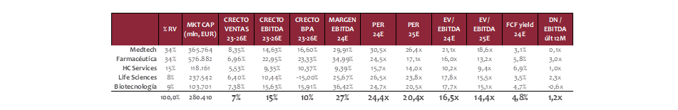 La exposición a bolsa a cierre de mes se sitúa en el 94,9% y la distribución por segmentos se mantiene en línea con la estructura habitual del fondo: 34% tecnología médica, 33% compañías farmacéuticas, 15% HC Services, 9% Life Sciences y 9% biotecnología. Mantenemos una cartera diversificada en 65 valores + 1 ETF de biotecnología, formando así parte de toda la cadena de valor que compone el sector salud, con mayor peso en aquellas verticales de mayor crecimiento, que nos permiten capturar retornos atractivos de doble dígito ya que invertimos en compañías estables, de calidad, con ingresos recurrentes y elevada generación de caja. Esto nos permite diferenciarnos de otros fondos y posicionarnos con retornos por encima de la media de la categoría de fondos de salud en todos los plazos.