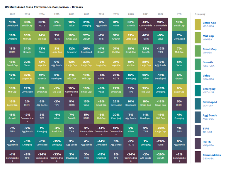 Por último, en la siguiente tabla se puede observar al comportamiento histórico por tipo de estilo de inversión. Si nos fijamos en lo que llevamos de año (YTD), las que mejor comportamiento han tenido están siendo Small Cap (donde no tenemos exposición), seguida de otros grupos donde sí tenemos más presencia como Value, Growth o Mid Cap.