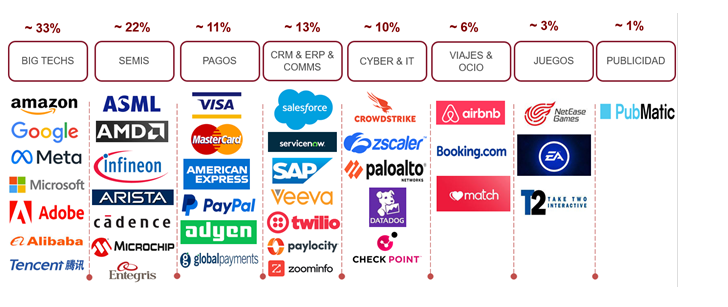 Por ejemplo, un 10% de nuestro fondo son empresas de Pagos, las cuales están teniendo un comportamiento más defensivo (recientemente ha perdido correlación con las tecnológicas y ha ganado con las financieras), que consideramos que nos aportan estabilidad en tiempos de volatilidad. Así por ejemplo, Paypal se encuentra en las empresas que peor comportamiento han tenido. Pero en este caso también han pesado factores inherentes al propio negocio: el mercado sigue muy cauto ante la potencial pérdida de cuota que puede estar sufriendo en SMBs, el menor margen que genera en la línea de Enterprise (división con fuerte crecimiento) y el retraso de cara a encontrar un sustituto para su actual CEO.