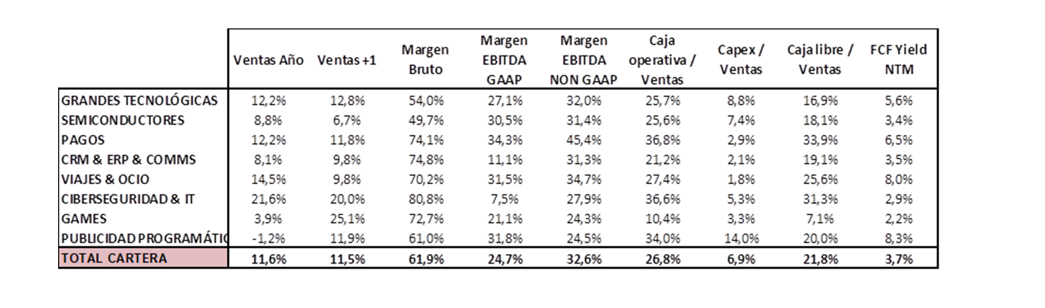 Para finalizar, respecto a las empresas en cartera, el crecimiento medio esperado en ventas para este FY23 es de un +11,6% yoy y +11,5% yoy para FY24, con un margen EBITDA Ajustado esperado del 32,6% de media para este FY23. Por valoración, la cartera está a 15,9x EBITDA NTM con un FCF Yield NTM del 3,7%.