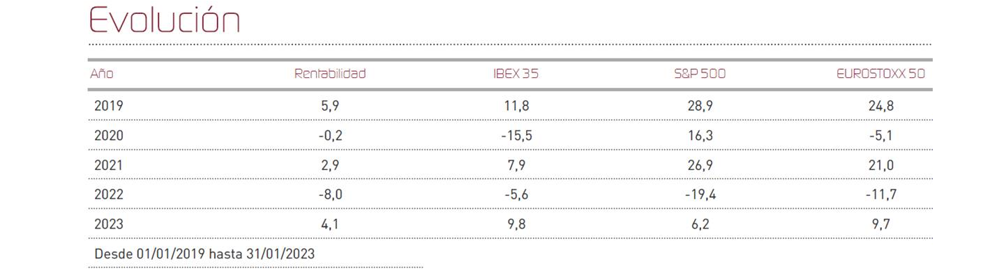 Renta 4 Renta Fija Mixto FI comenzó 2023 con un gran resultado mensual en enero al haber obtenido una rentabilidad del 4,1%, participando de uno de los mejores meses de enero en las bolsas que se recuerdan. Así, Eurostoxx e Ibex35 sumaron +9,7%, mientras que los índices internacionales mostraron un comportamiento algo más modesto: MSCI World +5,5% (Eur) S&P500, +4,7% (Eur) Nasdaq compuesto +9,1% (Eur). Las bolsas avanzaron impulsadas por una economía que se resiste a entrar en recesión a pesar de la abrupta subida de los tipos de interés de 2022 y de una inflación aún elevada. También ayudó la reapertura de la economía China tras abandonar su política de “Cero Covid”. Las esperanzas de que se produzca una avalancha de gasto por parte de los consumidores chinos, tras casi tres años de ausencia de gasto, podría favorecer un repunte económico mundial al tiempo que las tensiones en las cadenas de suministro deberían tender a disminuir. Por otro lado, los mercados de renta fija también recogieron con subidas la menor percepción del riesgo, con el índice Bloomberg Euro Aggregate Total Return subiendo un 2,2% esquivando así los descensos en un entorno donde los tipos de interés de referencia siguen escalando, aunque a un ritmo menor. Como muestra de ello, el Euribor 12 meses terminó el mes en el 3,41%, su mayor nivel en casi 15 años.