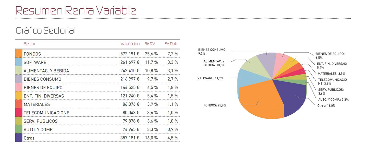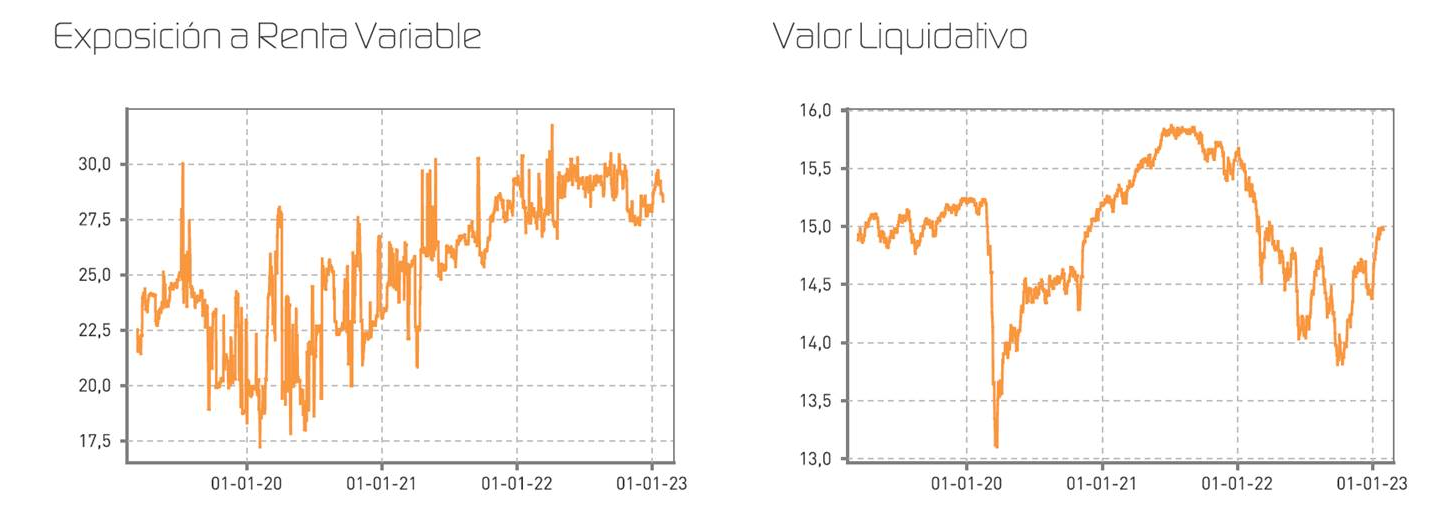 En lo referente a nuestro posicionamiento, hemos mantenido invariada la exposición a renta variable, que ronda el 28%, mientras que hemos aumentado los niveles de tesorería mientras surgen oportunidades adecuadas en renta fija, de forma que la cartera de bonos pesa un 71,6%, con cerca de un tercio de dicha cartera con vencimientos a menos de 1 año (aproximadamente un 23% del patrimonio del fondo). Esto nos va a permitir con buenos niveles de liquidez a lo largo de todo el año, lo que nos proporcionará flexibilidad y facilitará el aprovechamiento de las oportunidades que surjan.