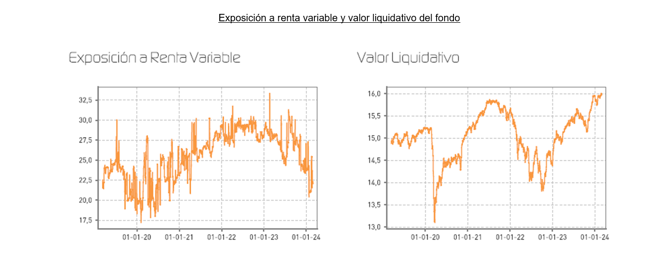 Durante el mes, hemos mantenido la exposición a renta variable en el 22%, un nivel considerablemente más bajo que el que tuvimos en 2023.