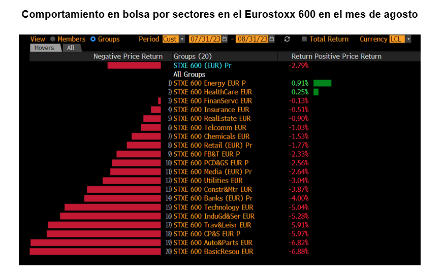 En términos de mercado, la rotación sectorial ha sido muy clara, con la gran mayoría de sectores retrocediendo a excepción de los que habían mostrado un peor comportamiento durante el año hasta la fecha: energía y salud.
