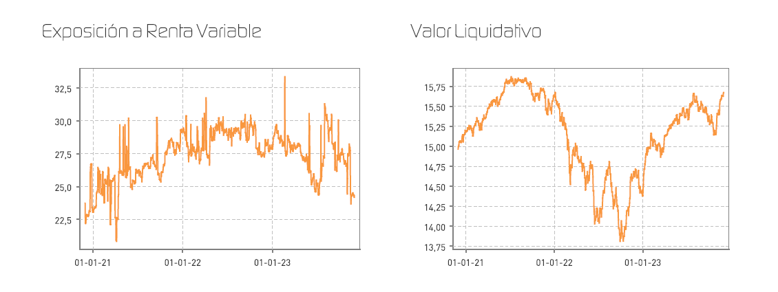 En renta fija, seguimos reforzando la cartera, al adquirir más títulos de Grifols 3,20% 2025 , HSBC 3,01% 2027, Leaseplan 2,125% 2025 y Volkswagen 2028, todo ello con el objetivo de alargar duraciones, que consideramos que es la estrategia adecuada. Por último hemos cerrado pagarés de Acciona y Urbaser con rentabilidades por encima del 4%. Aunque ligeramente, estamos tratando de incrementar la duración de la cartera de renta fija, a la espera de que los tipos empiecen a descender en el segundo trimestre de 2024.