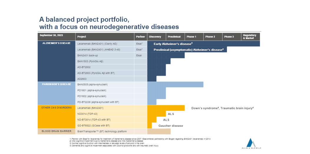 Bioarctic (Suecia, market cap 1,8bn EUR o 20bn SEK, 1,2% s/NAV) es una empresa biofarmacéutica enfocada en trastornos del sistema nervioso central y desórdenes neurodegenerativos. Es un área con importantes necesidades, no cubiertas, y grandes poblaciones de pacientes, lo que crea grandes oportunidades comerciales. La compañía ha contribuido de forma decisiva al tratamiento de la enfermedad de Alzheimer, siendo responsable del desarrollo inicial del primer fármaco plenamente aprobado de esta clase, Leqembi (lecanemab), comercializado por EISAI/BIIB. La enfermedad de Alzheimer representa un ámbito importante y creciente de necesidades médicas no cubiertas, y siendo un TAM potencial muy significativo (GIR estima en unos 30bn USD de peak sales). Lequembi ya ha sido aprobado en USA, Japón y China (se espera en Europa para el 1s24). La empresa se ha financiado mediante asociaciones farmacéuticas y actualmente es rentable (mg EBIT c.40% en 2023e). Además del Alzheimer, la compañía está desarrollando proyectos adicionales en areas como Parkinson, ELA, y la plataforma para la administración de productos biológicos en el cerebro. El principal activo en desarrollo es exidavenamb, un anticuerpo contra la alfa-sinucleína que entrará en fase 2 de ensayos en la enfermedad de Parkinson en 2024. Desde un punto de vista de caja, está bien financiada por hitos y royalties del producto principal (Leqembi). Cuenta con 1bn SEK de caja a sep-23 (10% del market cap actual). Con la aprobación de Lequembi y la oportunidad en Alzheimer cada vez más visible, Biarctic presenta un riesgo clínico más reducido, un camino más visible hacia la rentabilidad, y un potencial de apreciación significativo gracias al potencial de Lequembi. Cotiza a FCFy 25e del 4%.