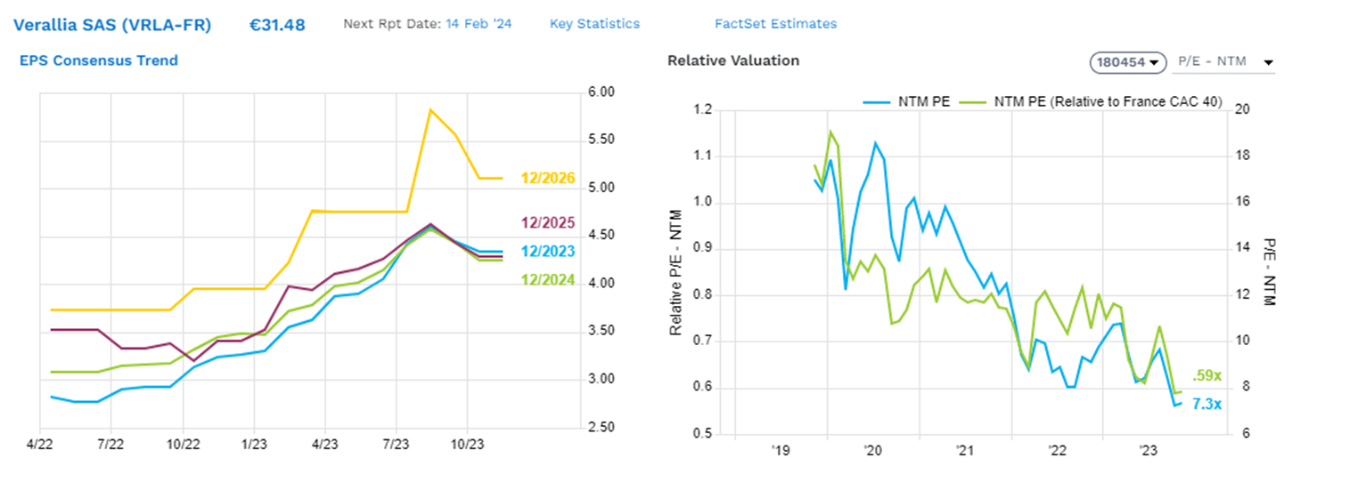 Nos parece también oportuno destacar Verallia y Vidrala (4,8% y 1,7% del NAV respectivamente), dentro del sector de envases de vidrio. Tras una publicación de cifras 3T23 algo por debajo de lo esperado, con desaceleración de volúmenes, ambas han corregido alrededor de un 20%. El consenso apenas se ha ajustado un 5% en EBITDA y BPA 23e, llevando a un de-rating significativo. Creemos que la contracción de volúmenes en 2s23 es algo temporal, y se compensará con ajustes en capacidad, diferencial positivo precio-coste, y acciones de eficiencia. Verallia cotiza a 11% FCF yield 2024e y 7,5x PER 24e (múltiplos mínimos históricos), Vidrala a 11x y 8% FCFy 24e, en una industria oligopolista, con crecimiento visible y márgenes/retornos elevados.